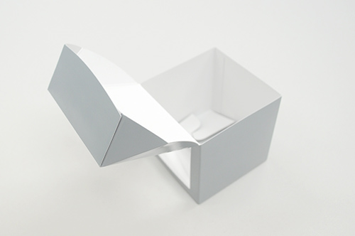 サイド貼りが合体したタイプで、マスカラなどの化粧品を入れる紙器です。